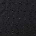 Мягкий и нежный хлопок черного оттенка с вышивкой и перфорацией. Узор выполнен путём машинной вышивки нитками в цвет ткани и расположен по всему полотну. Фактура ткани однородная, имеет тенденцию к сминаемости, не тянется, приятная на ощупь. Может потребоваться подклад. Идеально подходит для создания летних платьев, сарафанов, юбок, блузок и топов.