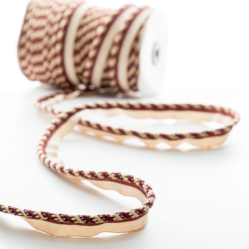 Декоративный витой круглый шнур, снабженый тесьмой для втачивания в стыковочный шов изделия. Применяется для отделки мягкой мебели, чехлов, декорирования домашнего текстиля, штор, покрывал, подушек. Позволяет изделию сохранять форму, образуя каркас. Диаметр шнура - 6 мм.