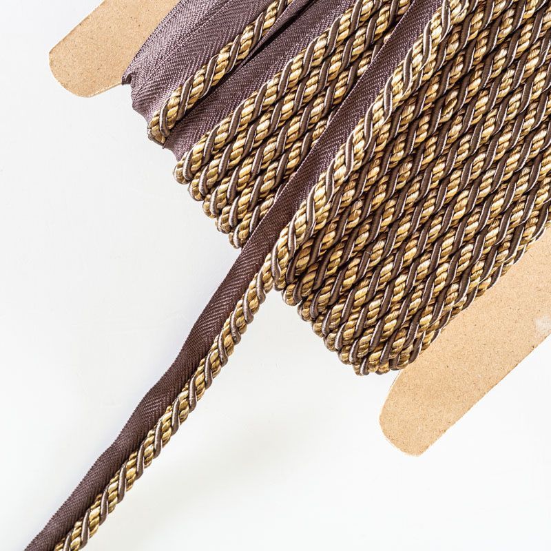 Декоративный витой круглый шнур, снабженый тесьмой для втачивания в стыковочный шов изделия. Применяется для отделки мягкой мебели, чехлов, декорирования домашнего текстиля, штор, покрывал, подушек. Позволяет изделию сохранять форму, образуя каркас. Диаметр шнура - 8 мм. Общая ширина шнура с тесьмой - 2 см.