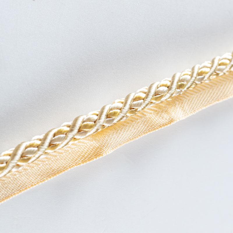 Декоративный витой круглый шнур, снабженый тесьмой для втачивания в стыковочный шов изделия. Применяется для отделки мягкой мебели, чехлов, декорирования домашнего текстиля, штор, покрывал, подушек. Позволяет изделию сохранять форму, образуя каркас. Диаметр шнура - 8 мм. Общая ширина шнура с тесьмой - 2 см.