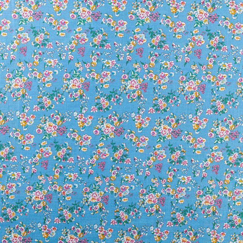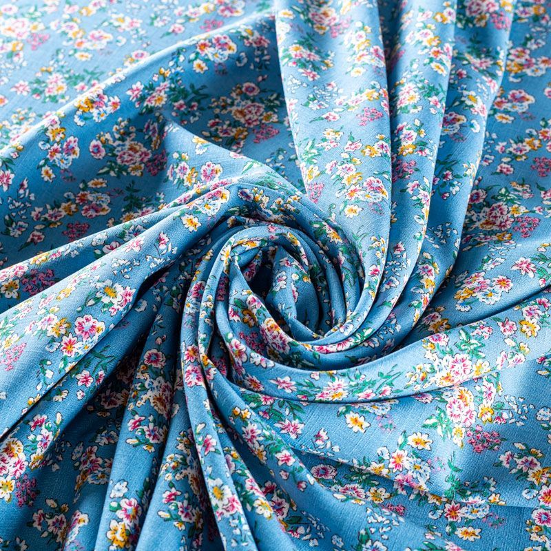 Плательно-блузочный штапель с цветочным принтом на серо-голубом фоне. Мягкий, тонкий, нежный, пластичный, приятный на ощупь, хорошо драпируется, практичный. Подойдет для пошива платья, топа, блузки, рубашки, юбки, летних брюк.