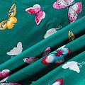 Плательно-блузочный штапель с романтичным принтом в виде цветных стилизованных бабочек на зеленом фоне. Мягкий, тонкий, нежный, пластичный, приятный на ощупь, хорошо драпируется, практичный. Подойдет для пошива платья, топа, блузки, рубашки, юбки, летних брюк.