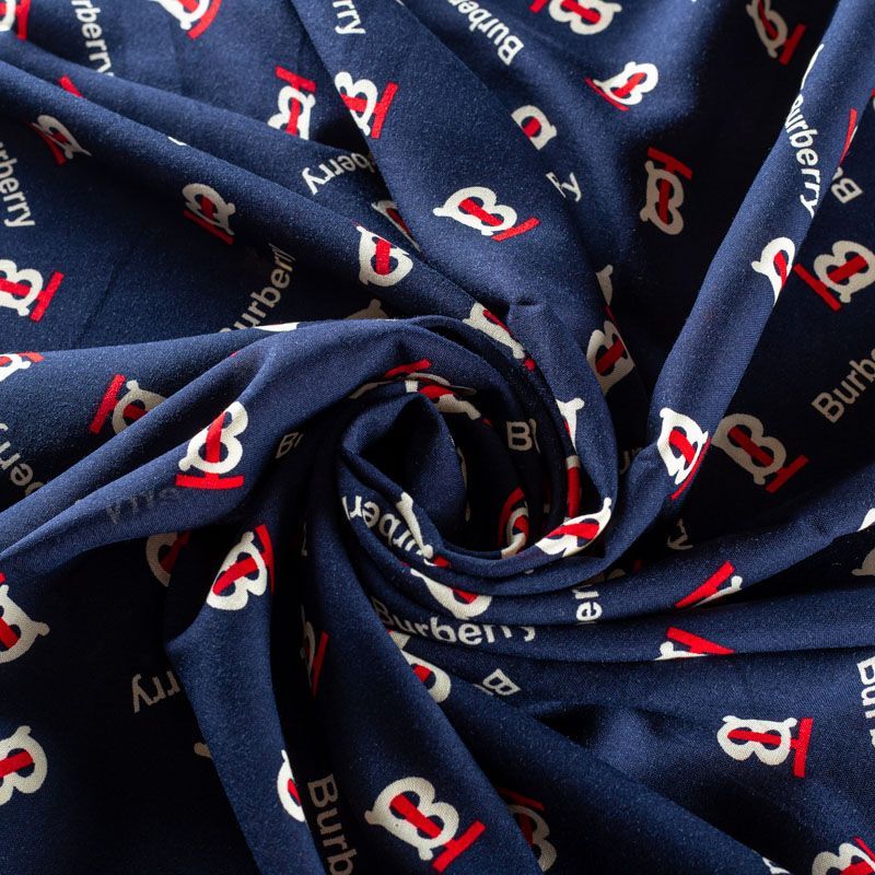 Плательно-блузочный штапель темно-синего оттенка с принтом известного бренда. Ткань мягкая, тонкая, нежная, пластичная, приятная на ощупь, хорошо драпируется, практичная, поверхность слегка фактурная. Подойдет для пошива платья, топа, блузки, рубашки, юбки, летних брюк.