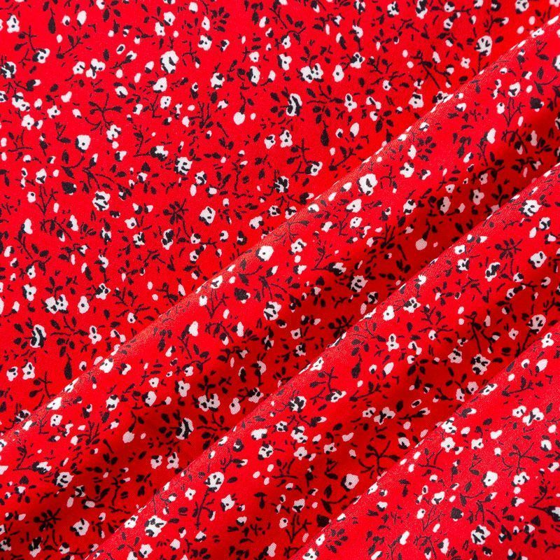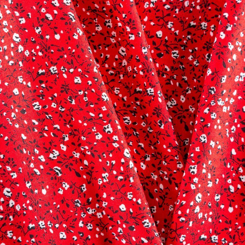 Плательно-блузочный штапель с мелким растительным принтом на насыщенном красном фоне. Мягкий, тонкий, нежный, пластичный, приятный на ощупь, хорошо драпируется, практичный. Подойдет для пошива платья, топа, блузки, рубашки, юбки, летних брюк, комбинезона.