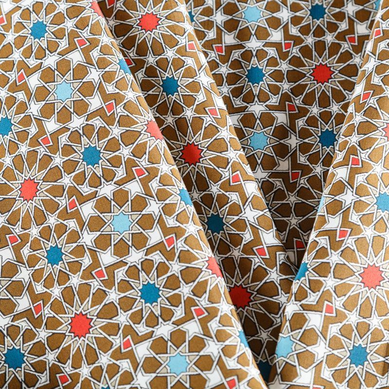 Плательно-блузочный штапель с абстрактным геометрическим принтом на фоне цвета хаки. Мягкий, тонкий, нежный, пластичный, приятный на ощупь, хорошо драпируется, практичный. Подойдет для пошива платья, топа, блузки, рубашки, юбки, летних брюк, комбинезона.