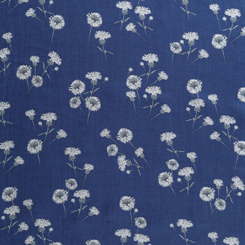 Итальянский плательно-блузочный штапель темно-синего цвета с нежным цветочным принтом. Ткань мягкая, тонкая, нежная и пластичная, приятная на ощупь, хорошо драпируется, практичная. Подойдет для пошива платья, топа, блузки, рубашки, юбки, летних брюк.