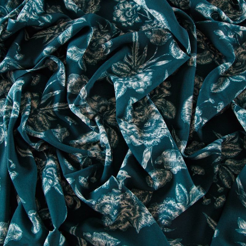 Ткань легкая и пластичная, отлично собирается в мягкие складки, красиво струится. Поверхность гладкая и шелковистая, без блеска. Не просвечивается. Подойдёт для платья, блузки, пляжной туники, топа, летних сарафанов, летящей юбки.