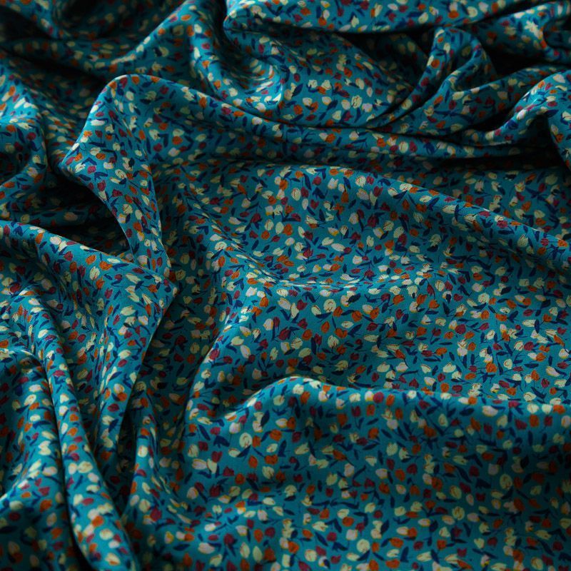 Штапель 069-13566 темно-бирюзовый принтованный в Нарьян-Маре
