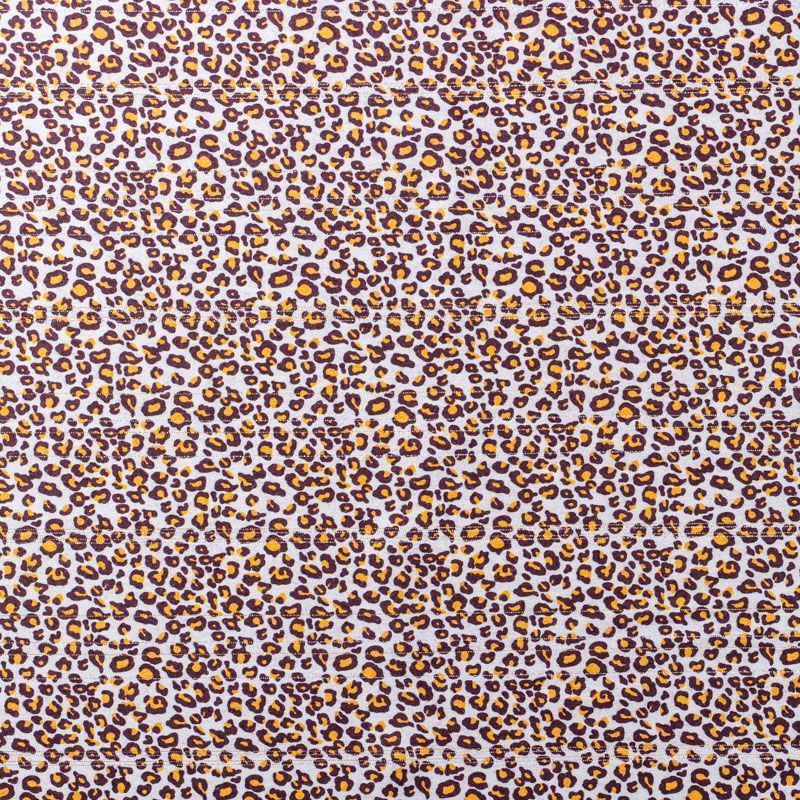 Плательно-блузочный штапель с мелким анималистическим принтом на белом фоне декорирован золотистой люрексовой нитью. Мягкий, тонкий, нежный, пластичный, приятный на ощупь, не много просвечивает, хорошо драпируется, практичный. Подойдет для пошива платья, топа, блузки, рубашки, юбки, летних брюк.