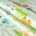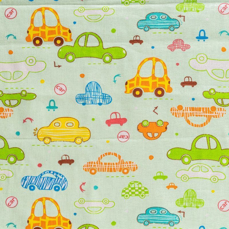Ткань полотняного переплетения, тонкая, легкая и мягкая. Не вызывает аллергии, дышит и хорошо впитывает влагу. Милый принт в виде игрушечных машинок на светло-зеленом фоне прекрасно подойдет для пошива детской одежды, нательного белья, халатов и пижам.
