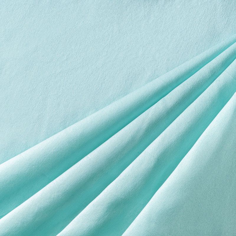 Шелковистая тафта светлого оттенка цвета тиффани. Поверность матовая, с благородным шелковым лоском. Полотно средней плотности, легкое, отлично держит форму, драпируется жесткими складками. Хорошо смотрится в платьях с пышными юбками и крупными драпировками, костюмах, корсетах для платья, вечерних и коктельных платьях.