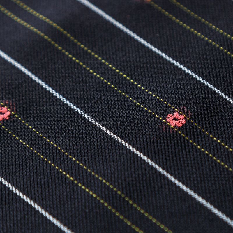 Итальяская костюмно-плательная шерстьс хлопком черного цвета в тонкую белую полоску и элементами вышивки. Ткань средней плотности, пластичная, очень приятная на ощупь, драпируется в слегка держащие форму складки, с полотняным переплетением, не тянется. Подойдет для всех видов изделий - платьев, сарафанов, модных жакетов, жилетов, брючных и юбочных костюмов, кюлотов, брюк-палаццо, юбок различных фасонов.