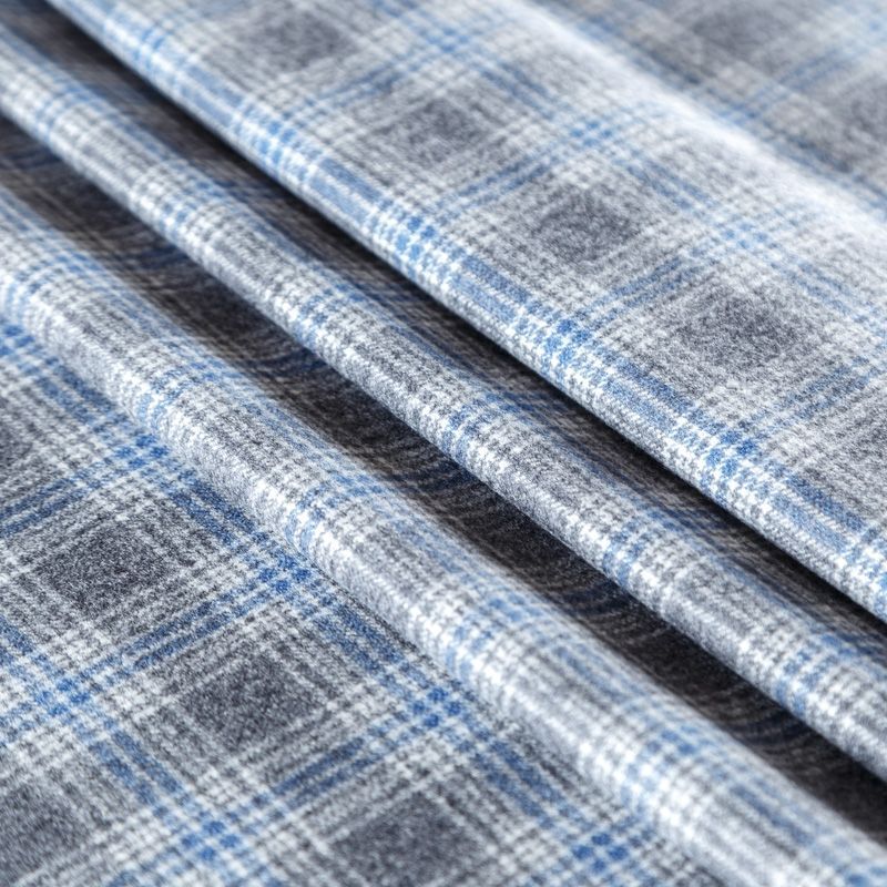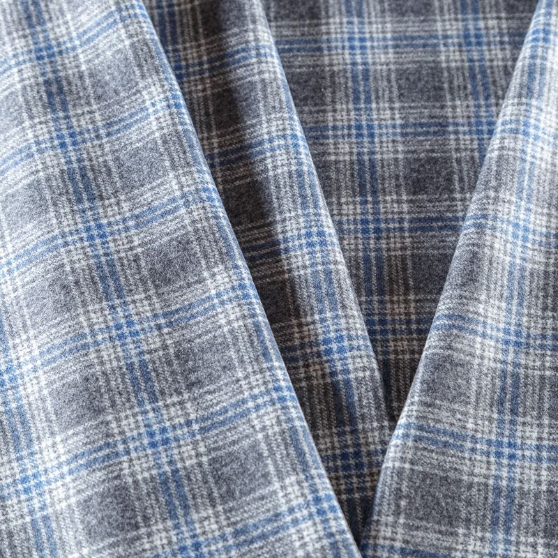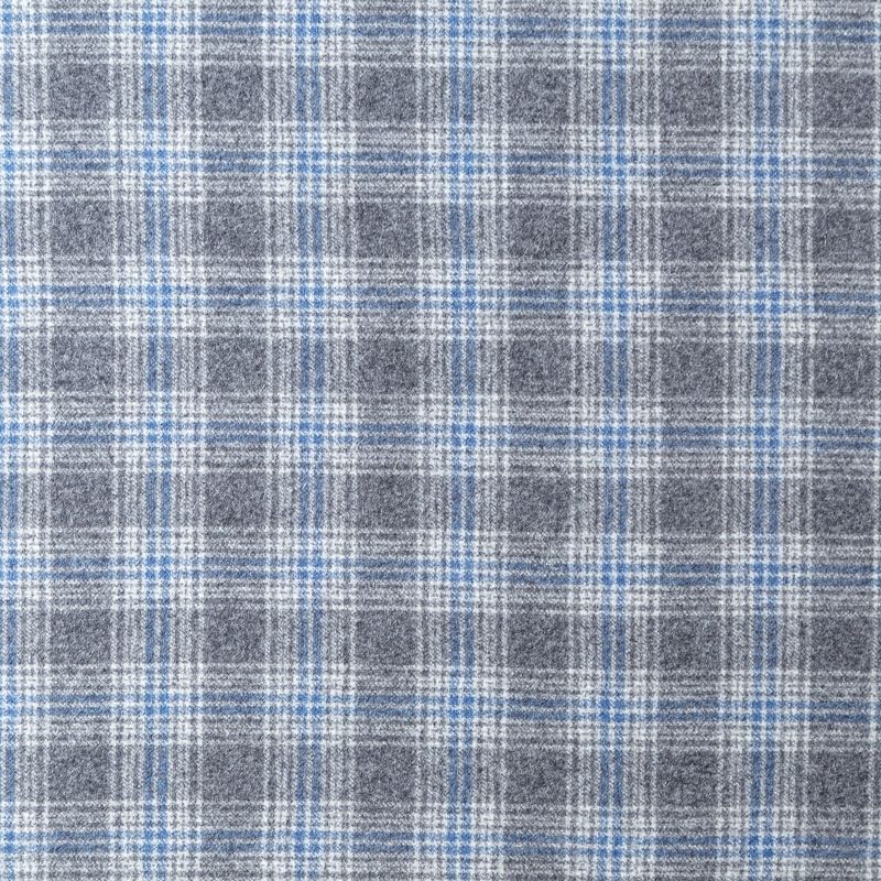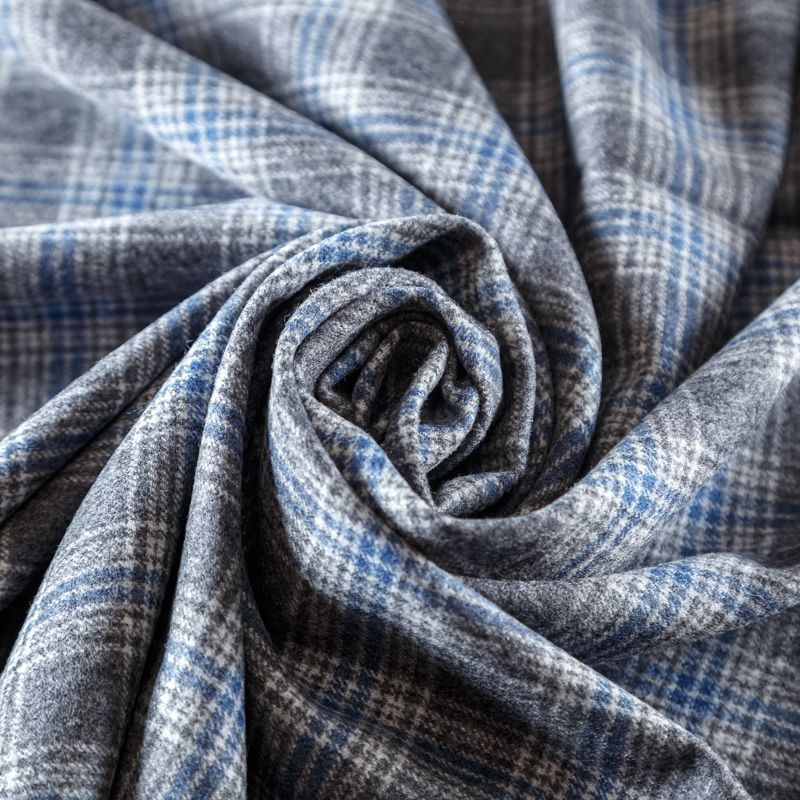 Итальянская шерстяная фланель в сером оттенке. Сочетание линий молочного, голубого и серого цветов образуют красивую сложную клетку. Ткань костюмно-плательной плотности, очень мягкая, приятная на ощупь, не толстая, пластичная. Прекрасно подойдет для пошива платья, сарафана, юбки, брюк, шорт, жакета, жилета, а также верхней одежды с дополнительным утеплителем.
