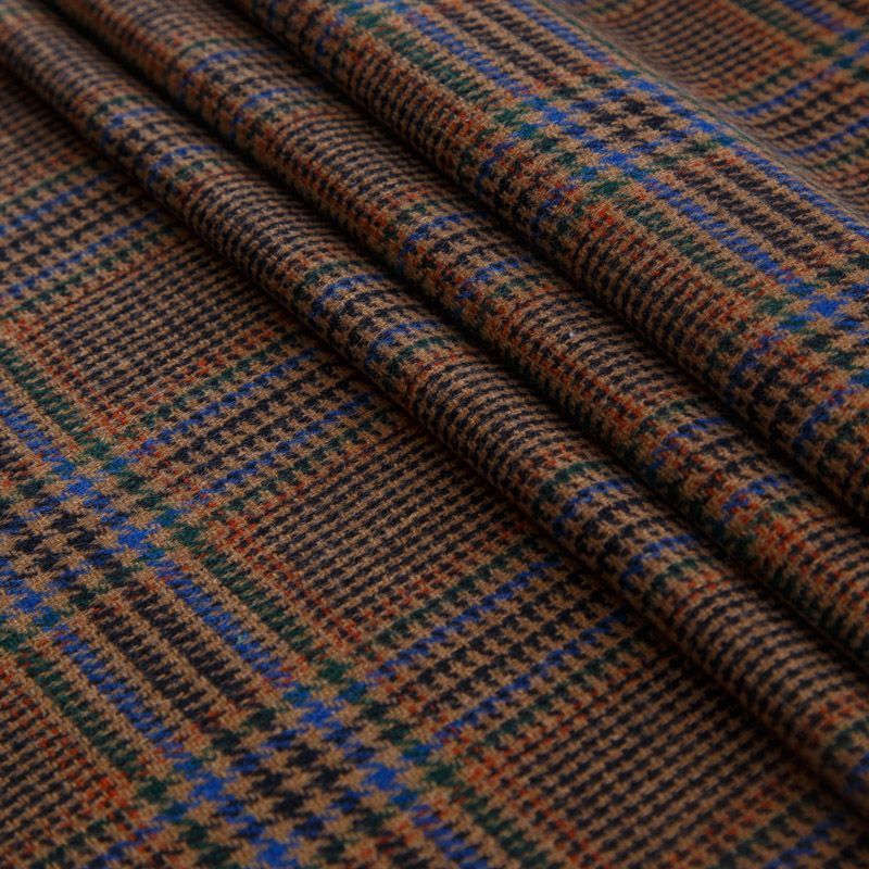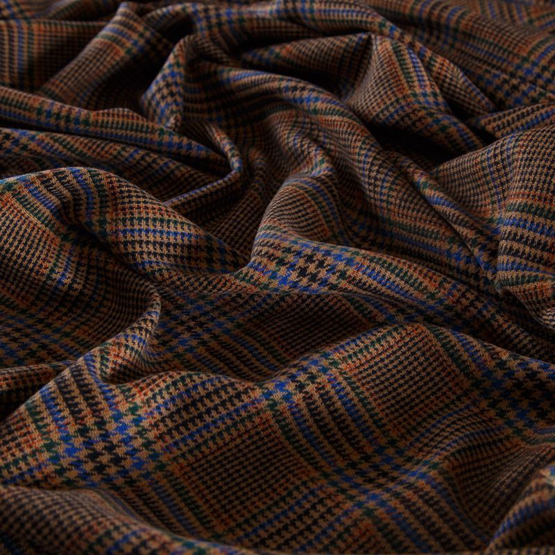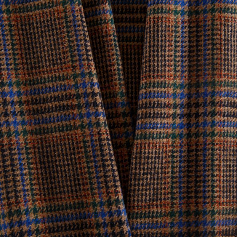 Итальянская шерстяная костюмная клетка гленчек в духе настоящей английской классики в благородном коричневом оттенке. Ткань мягкая, хорошо держит форму, не мнётся, не колется. Отлично подойдёт для жакета, платья, жилета, облегчённого пальто, брюк или юбки.