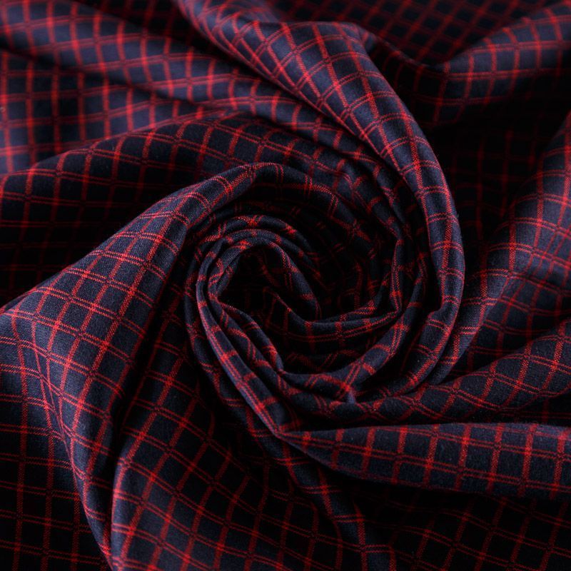 Оригинальная двухсторонняя ткань с принтом клетка с одной стороны и мелким геометрическим рисунком в виде вишневых точек - с другой. Материал плотный, но не толстый, хорошо драпируется, имеет мягкую поверхность с небольшими ворсинками. Прекрасно подходит для пошива платьев, сарафанов, юбок, брюк, жакетов.