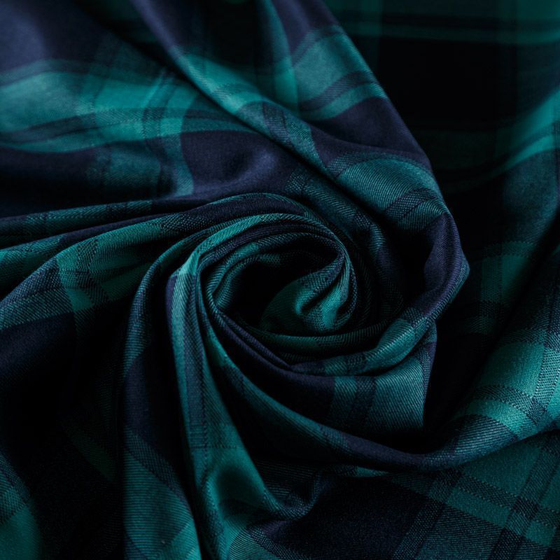 Костюмно-плательная шотландка средней плотности в сине-зеленых оттенках. Материал в меру мягкий и приятный на ощупь, держит форму, хорошо драпируется и образует устойчивые складки. Ткань отлично подойдет на костюмы, в том числе мужские, юбки, брюки, платья, жакеты, для пошива школьной формы.