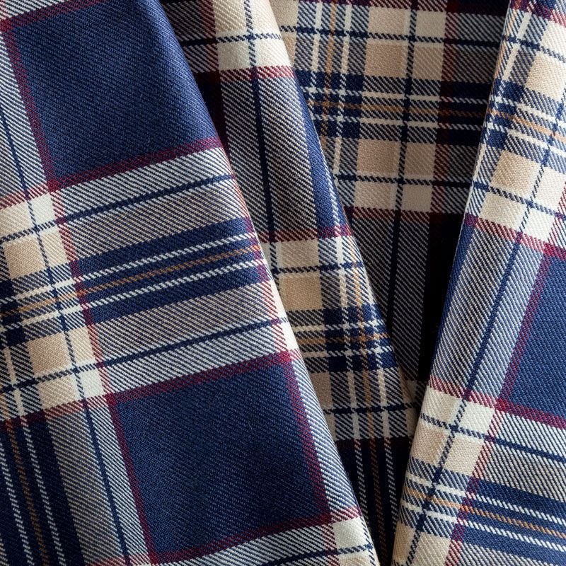 Итальянская костюмная шерсть средней плотности, мягкая и приятная на ощупь, формоустойчива, хорошо драпируется и образует мягкие складки. Сочетание линий синего, бежевого, красного и белого цветов образует сложную красивую клетку тартан. Ткань отлично подойдет на костюмы, юбки, брюки, платья, сарафаны, жакеты, для школьной формы.