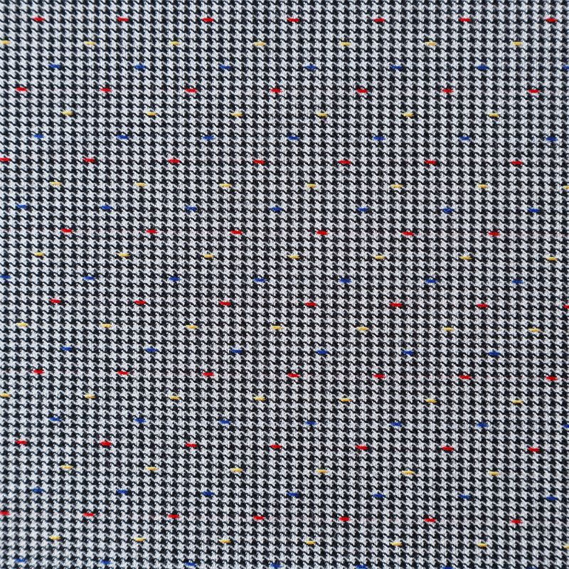 Костюмно-плательная ткань средней плотности с добавлением вискозы. Мягкая, пластичная, с мелким геометрическим принтом - гусиная лапка в черно-белой гамме. Полотно очень приятное на ощупь, не мнется, не сухое, отлично драпируется. Идеально подойдет для костюма, жакета или жилета, брюк, а также юбок и платьев.