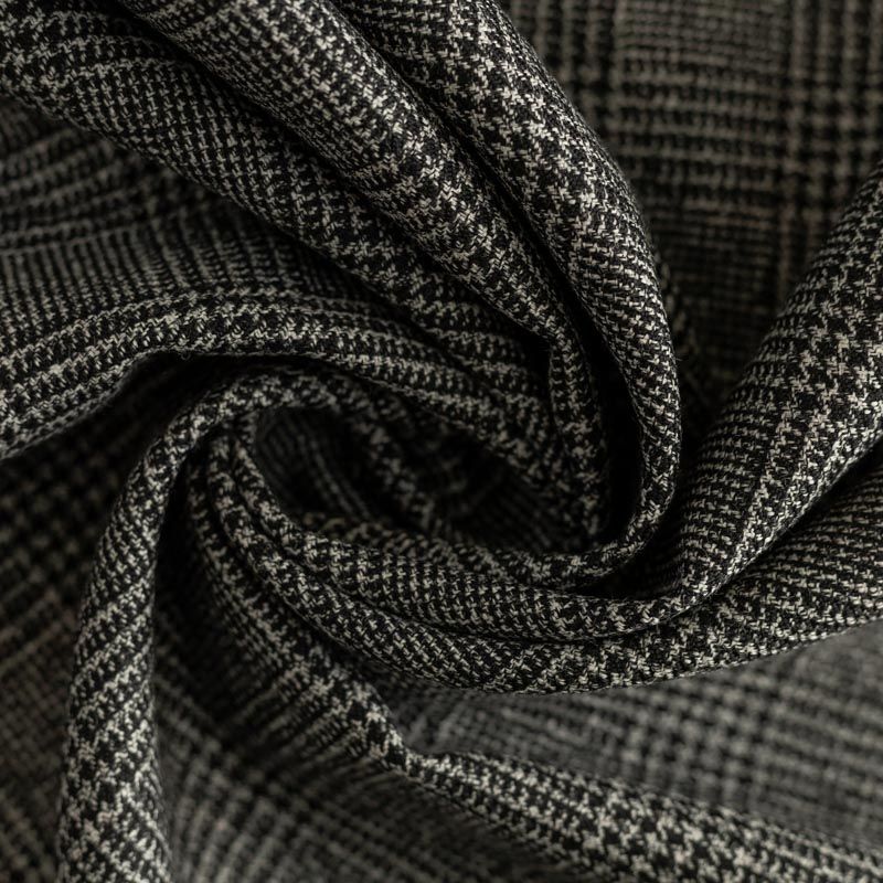 Ткань плотная, прекрасно держит форму, не тянется. Немного суховата на ощупь. Костюмная шерсть с рисунком классической клетки "гленчек" будет отличным вариантом для пошива костюмов, жакетов, легких пальто, брюк, юбок или шорт.