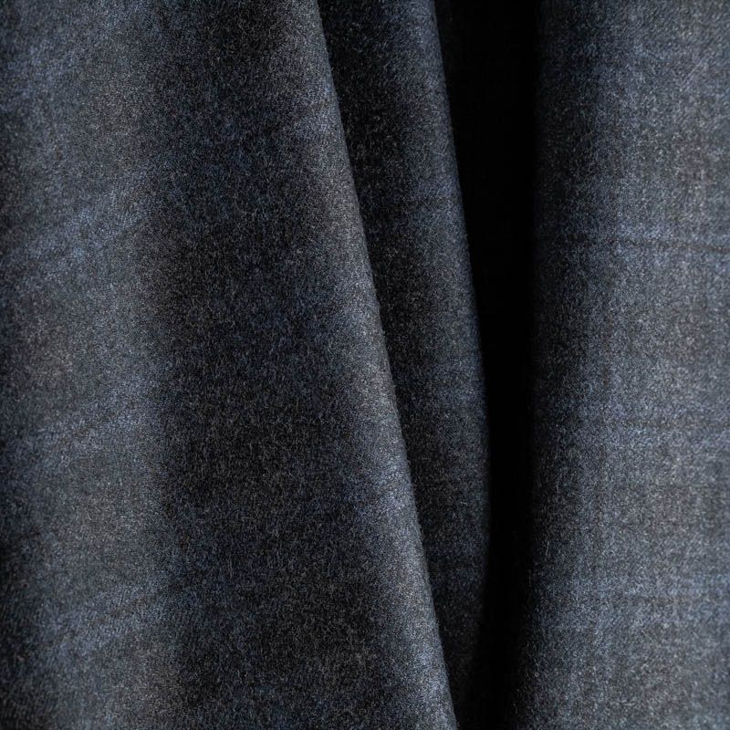 Стильная и элегантная костюмная ткань. Шерсть с бархатистой поверхностью, тонкая, очень приятная на ощупь, пластичная, мягкая, мягко драпируется в складки, немного держит форму. Стильная еле читаемая клетка светло-голубого цвета на фоне в приглушённо-серых оттенках. Идеально подойдет для пошива сарафанов, жакетов, жилетов, брючных и юбочных костюмов, кюлотов, брюк-палаццо.