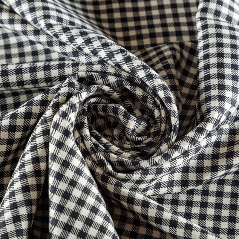 Итальянская костюмная шерсть в миниатюрную клеточку черного и приглушенно-белого цвета. Ткань пластичная, хорошо драпируется, не просвечивает, мягкая и комфортная в носке. Подойдет для пошива костюма, платья, юбки, жакета, жилета, брюк или шорт.