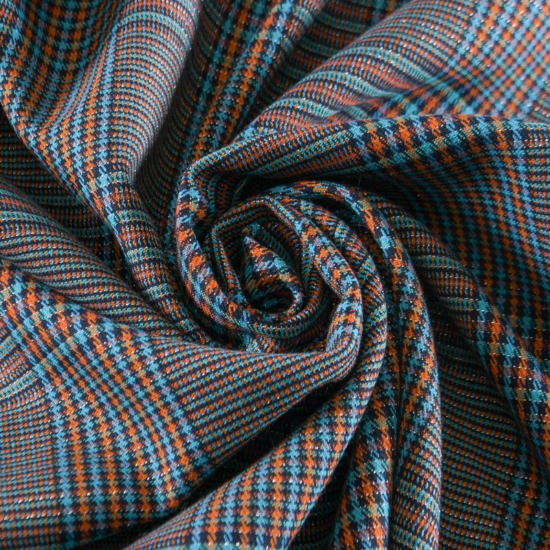 Ткань костюмная с люрексом 025-12235 лазурно-оранжевый