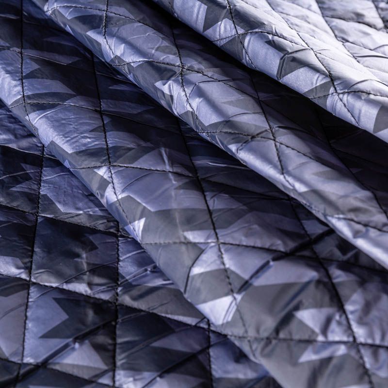 Двухслойная курточная ткань сложного пепельно-лавандового оттенка с необычным для стежки принтом - гусиная лапка, простеганная не крупными ромбами размером 4х4 см. Нижний слой - синтепон, верхний - полиэстер, по качеству напоминает болонь. Очень мягкая и легкая, пластичная, хорошо драпируется. Прекрасно подойдет для  пошива легких пальто, курток, жилетов, накидок-кейпов, объемных сумок.