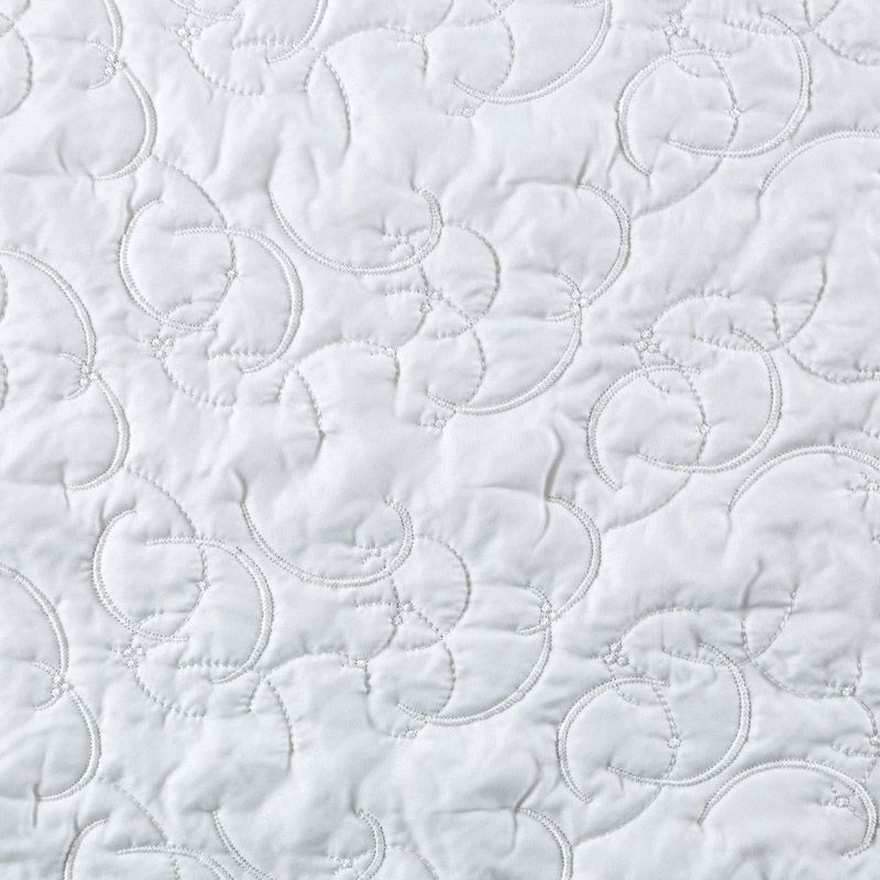 Двухслойная курточная ткань молочного оттенка, с абстрактной стежкой нитками в тон полотну. Нижний слой - синтепон, верхний - полиэстер, по качеству напоминает болонь. Ткань легкая, пластичная, хорошо драпируется. Прекрасно подойдет для пошива пальто, курток, жилетов, накидок-кейпов, объемных сумок, одежды для домашних питомцев, туристического снаряжения.
