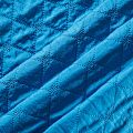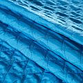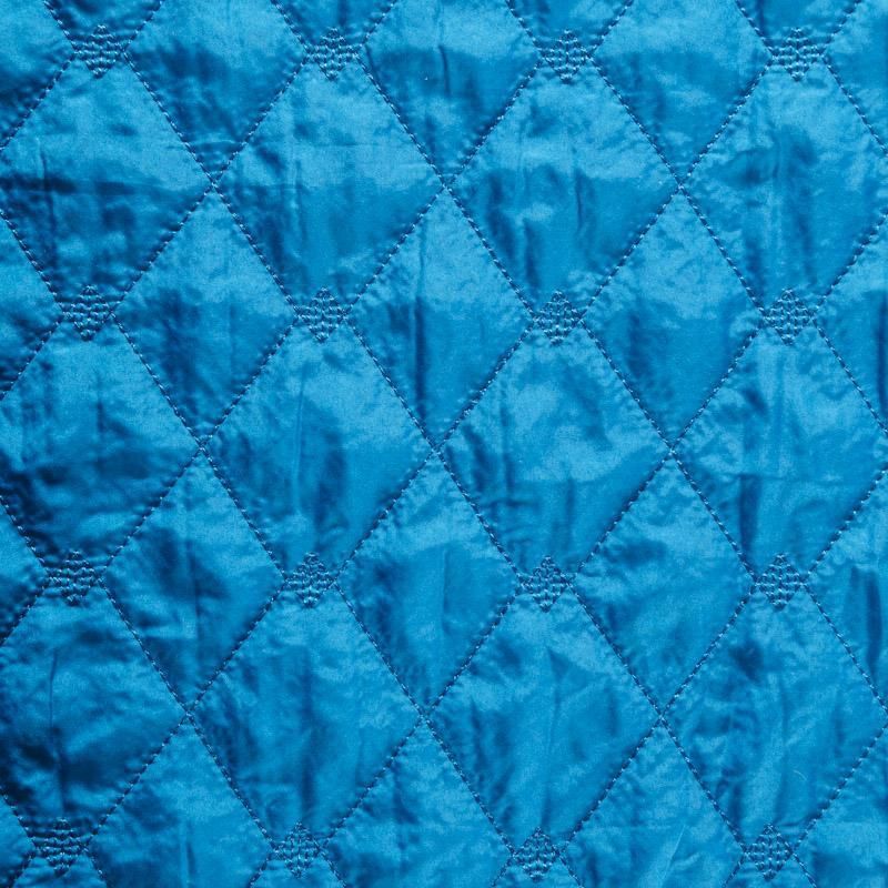 Двухслойная курточная ткань лазурно-голубого оттенка, с геометрической стежкой нитками в тон полотну. Нижний слой - синтепон, верхний -  полиэстер, по качеству напоминает болонь. Ткань легкая, пластичная, хорошо драпируется. Прекрасно подойдет для  пошива пальто, курток, жилетов, накидок-кейпов, объемных сумок, одежды для домашних питомцев, туристического снаряжения.