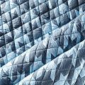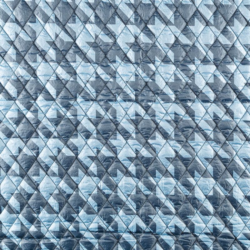 Двухслойная курточная ткань серо-голубого оттенка с необычным для стежки принтом - гусиная лапка, простеганная не крупными ромбами размером 4х4 см. Нижний слой - синтепон, верхний - полиэстер, по качеству напоминает болонь. Очень мягкая и легкая, пластичная, хорошо драпируется. Прекрасно подойдет для  пошива легких пальто, курток, жилетов, накидок-кейпов, объемных сумок.