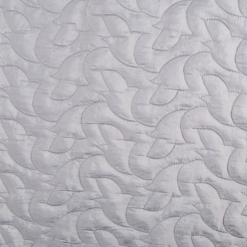Двухслойная курточная ткань светло-серого оттенка, простеганная фигурной вышивкой нитками в тон. Нижний слой - синтепон, верхний - плотный матовый полиэстер. Очень мягкая и легкая, пластичная, хорошо драпируется. Прекрасно подойдет для пошива легких пальто, курток, жилетов, накидок-кейпов, объемных сумок.