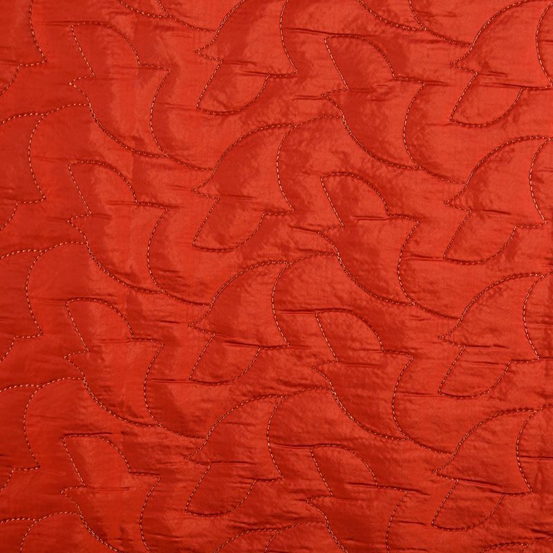 Двухслойная курточная ткань красно-оранжевого оттенка, простеганная фигурной вышивкой нитками в тон. Нижний слой - синтепон, верхний - плотный матовый полиэстер. Очень мягкая и легкая, пластичная, хорошо драпируется. Прекрасно подойдет для  пошива легких пальто, курток, жилетов, накидок-кейпов, объемных сумок.