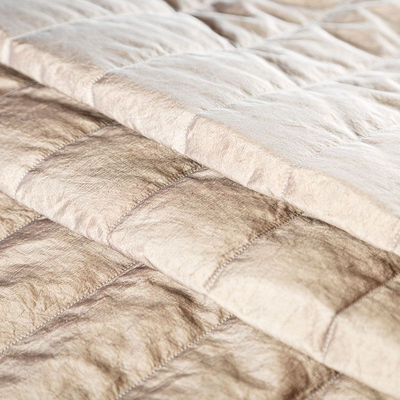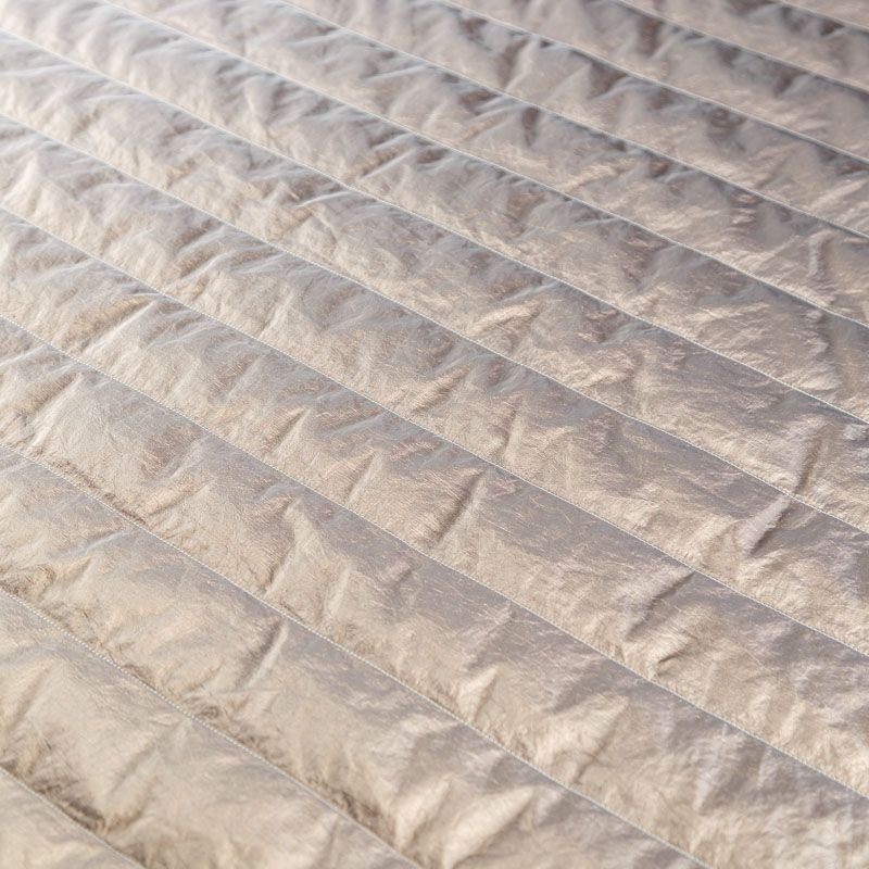 Итальяская двухслойная курточная ткань бронзового оттенка, простеганная широкими полосами вдоль кромки. Нижний слой - воздушный синтепоновый утеплитель, верхний - матовая, слегка жатая плотная плащевая ткань. Очень мягкая и легкая, пластичная, хорошо драпируется. Прекрасно подойдет для  пошива легких пальто, бомберов, парки, курток, жилетов, накидок-кейпов, объемных сумок.