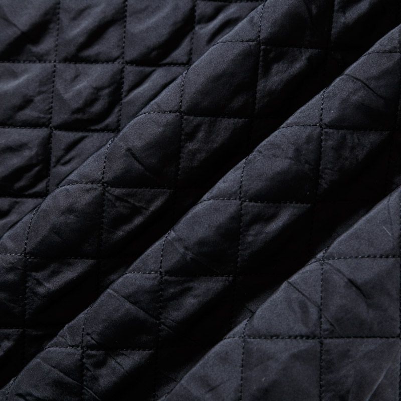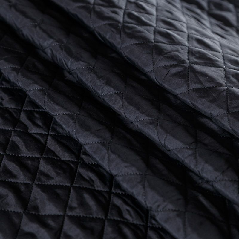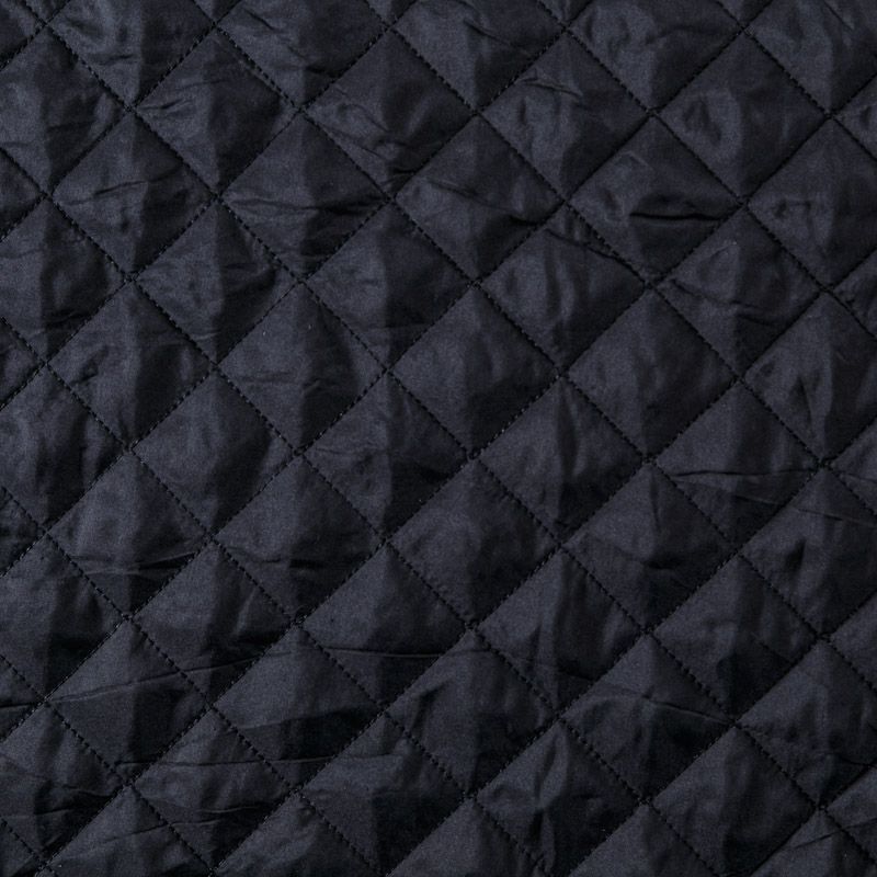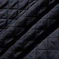 Двухслойная курточная ткань черного цвета, простеганная не крупными ромбами нитками в тон полотну. Нижний слой - синтепон, верхний - плотный матовый полиэстер. Очень мягкая и легкая, пластичная, хорошо драпируется. Прекрасно подойдет для  пошива легких пальто, курток, жилетов, накидок-кейпов, объемных сумок.