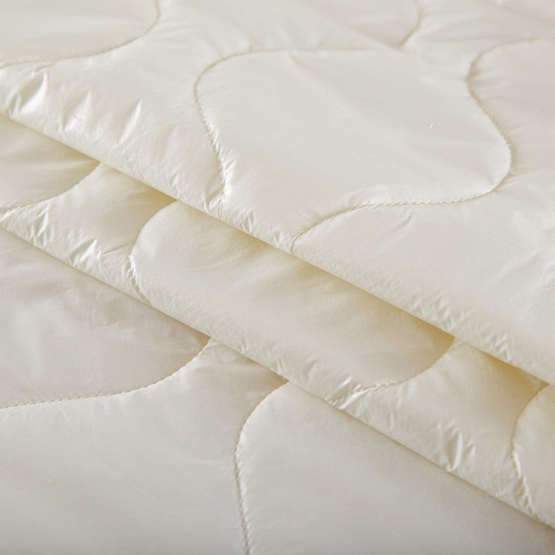 Итальянская трехслойная курточная ткань в молочном оттенке, с фигурной стежкой. Верхний  слой - полиэстер, по качеству напоминающий болонь, средний слой - синтепон, нижний слой - подкладочная ткань в белом цвете. Очень мягкая и легкая, пластичная, хорошо драпируется. Прекрасно подойдет для  пошива легких пальто, курток, жилетов, накидок-кейпов, объемных сумок.