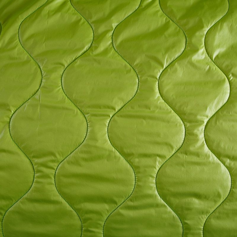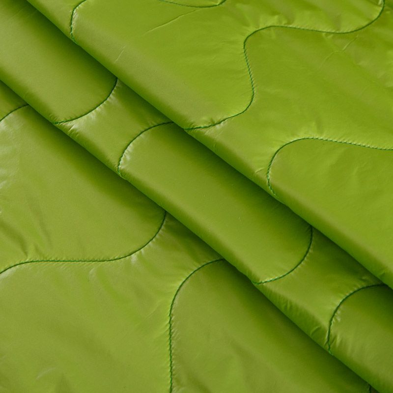 Итальянская трехслойная курточная ткань в зеленом оттенке, с фигурной стежкой. Верхний  слой - полиэстер, по качеству напоминающий болонь, средний слой - синтепон, нижний слой - подкладочная ткань в белом цвете. Очень мягкая и легкая, пластичная. Прекрасно подойдет для  пошива легких пальто, курток, жилетов, накидок-кейпов, объемных сумок.