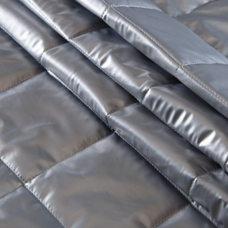 Итальянская трехслойная курточная ткань серебристо-серого оттенка, простеганная ромбами 10*10 см. Нижний слой - подкладочная ткань белого цвета, средний слой - синтепон, верхний - полуглянцевый гладкий полиэстер. Очень мягкая и легкая, пластичная, хорошо драпируется. Прекрасно подойдет для пошива легких пальто, бомберов, парки, курток, жилетов, накидок-кейпов, объемных сумок.