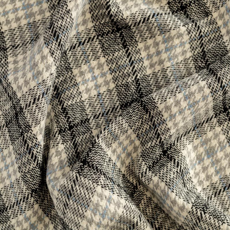 Стильная и элегантная пальтовая ткань с светлых тонах. Поверхность бархатистая, мягкая, очень приятная на ощупь, пластичная, мягко драпируется в складки, немного держит форму. Сочетание линий голубого, черного, серого оттенков и рисунка гленчек образует сложную красивую многоцветную клетку. Отлично подойдет для пошива пальто, теплых костюмов, юбки, шорт, жакета, кейпа, жилета.