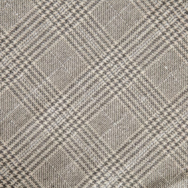 Плотная пальтовая ткань с добавлением шерсти, мягкая и приятная на ощупь, формоустойчива, хорошо драпируется. Переплетение нитей серого, белого цветов в узоре "гусиная лапка" и люрексной нити образует сложную красивую клетку тартан. Ткань отлично подойдет для пошива пальто, теплых костюмов, юбки, шорт, жакета, кейпа, жилета.