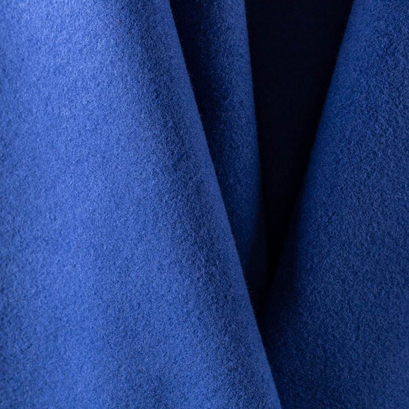 Плотная пальтовая ткань с коротеньким мягким ворсом на лицевой стороне и ровная на изнаночной. Она легко раскраивается, не скользит и не осыпается на срезах. Прекрасно подойдет для пошива женских пальто, теплых костюмов, кейпов, мягких бомберов, жилетов и головных уборов.