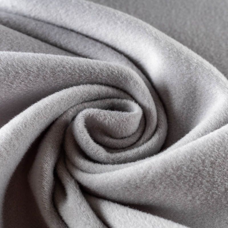 Плотная пальтовая ткань с коротеньким мягким ворсом на лицевой стороне и ровная на изнаночной. Она легко раскраивается, не скользит и не осыпается на срезах. Прекрасно подойдет для пошива женских пальто, теплых костюмов, кейпов, мягких бомберов, жилетов и головных уборов.