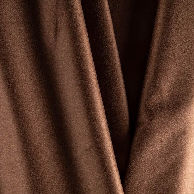 Пальтовая итальянская шерсть в коричневом оттенке. Ткань плотная, достаточно теплая, комфортная для одежды на сезон осень-зима. Полотно имеет короткий ворс. Мягкое и нежное на ощупь, не толстое и не тяжелое, хорошо держит форму. Прекрасно подойдет для пошива женских пальто, теплых костюмов, кейпов, мягких бомберов, жилетов и головных уборов.