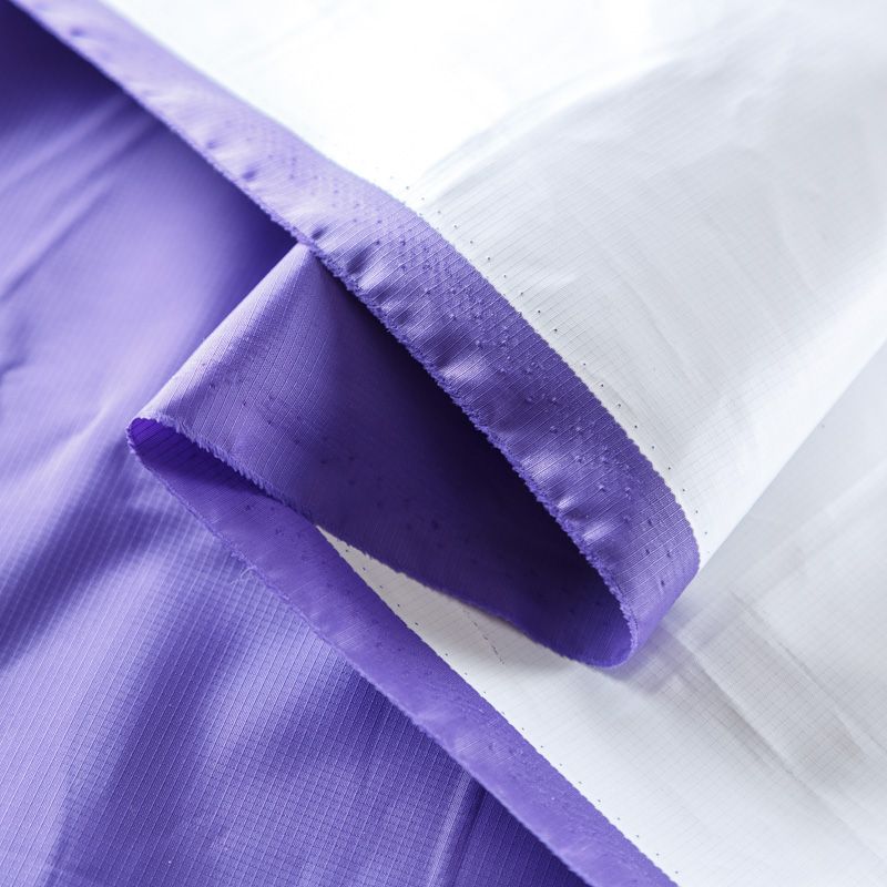 Материал обладает влагонепроницаемостью, поверхность матовая, имеет мелкоячеистую фактуру. Хорошо держит форму, достаточно прочная и эластичная. Используется для пошива курток, ветровок, плащей, утепленной одежды, одежды для собак, палаток, спальных мешков, а также для изготовления тентов для техники, штор, занавесок, сумок, тентов для садовых качелей.