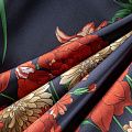 Тонкая, но прочная плащевая ткань с ярким цветочным принтом. Поверхность матовая, гладкая. Прекрасно подойдет для пошива верхней одежды: ветровки, плаща, куртки, жилета и пуховика.