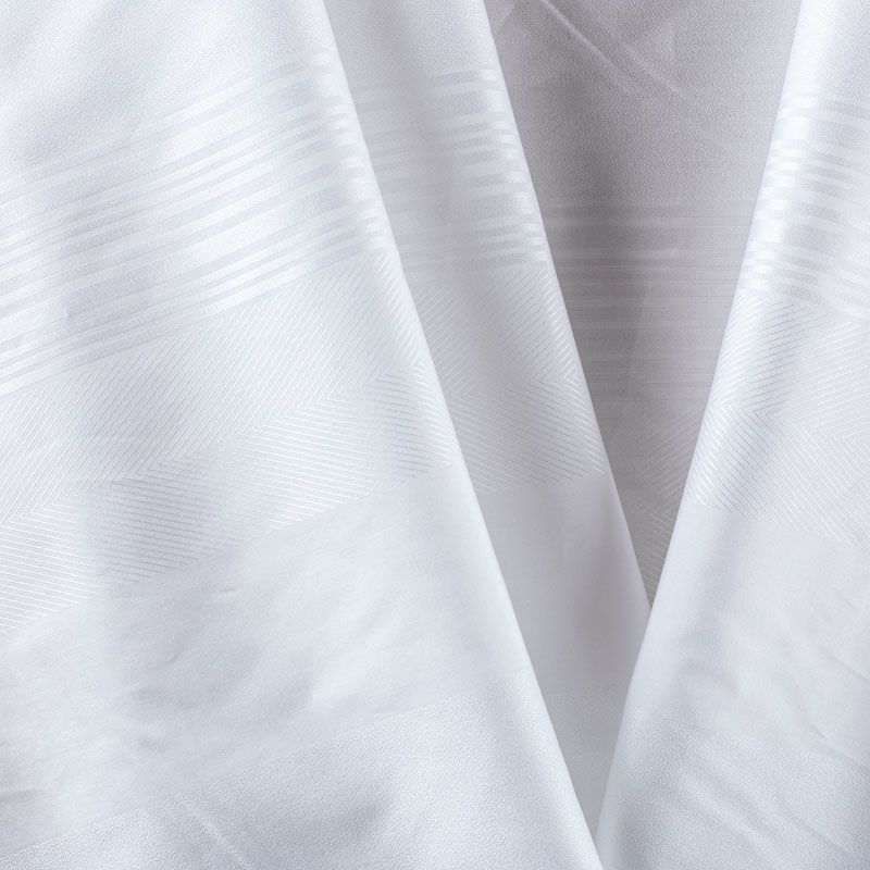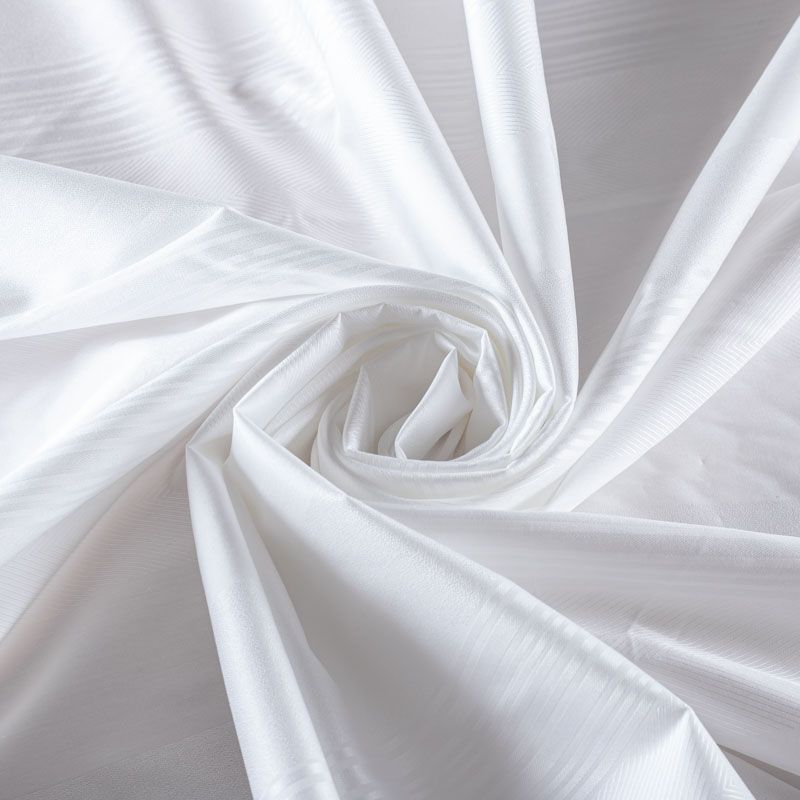 Белоснежная итальянская плательно-сорочечная вискоза с жаккардовыми полосками. Ткань мягкая, тонкая, лёгкая, непрозрачная, пластичная и приятная к телу, хорошо драпируется, имеет фактурную поверхность, сатиновый блеск. Прекрасно подойдет как для пошива предметов мужского гардероба, так и для блуз, платья-рубашки, сарафана, туники, топа, летнего костюма.
