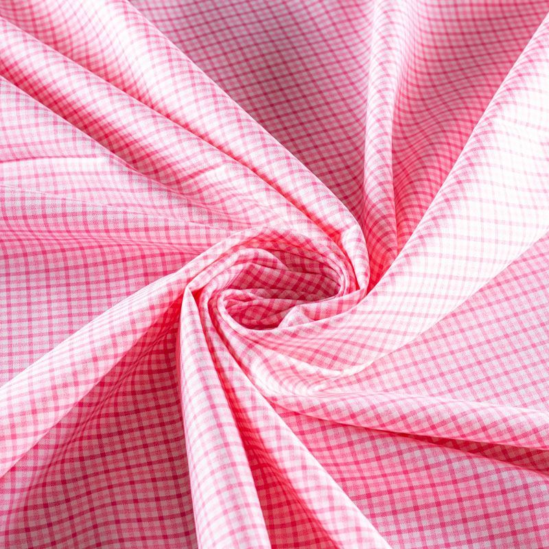 Итальянский плательно-рубашечный хлопок в розовую клетку. Ткань мягкая, лёгкая, непрозрачная, пластичная и приятная к телу, хорошо драпируется, имеет гладкую матовую поверхность и сатиновое плетение. Прекрасно подойдет как для пошива платья-рубашки, сарафана, платьев различных фасонов, туники, топа, летнего костюма, комбинезона, мужской и детской одежды.
