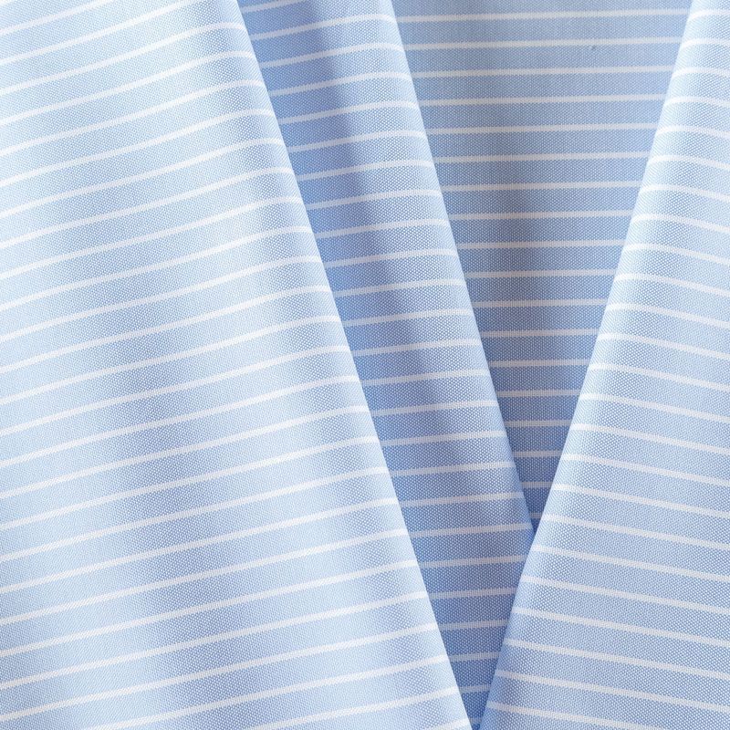 Итальянский плательно-рубашечный хлопок в белую полоску. Ткань мягкая,  средней плотности, непрозрачная, пластичная и приятная к телу, хорошо драпируется, имеет полотняное плетение. Прекрасно подойдет как для пошива платья-рубашки, сарафана, платьев различных фасонов, туники, топа, летнего костюма, комбинезона, детской и мужской одежды.