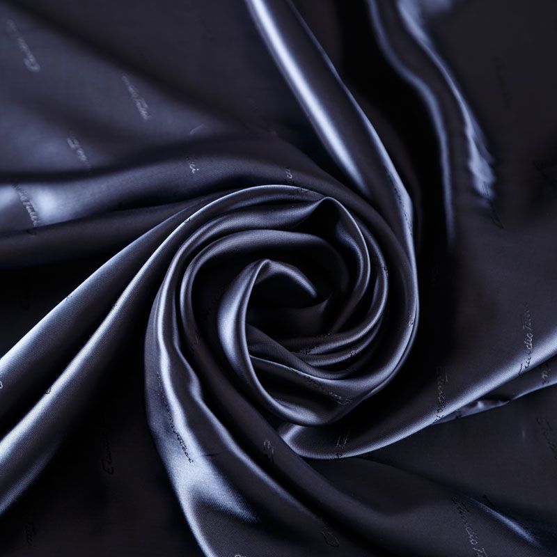Итальянская подкладочная ткань из вискозы черного оттенка с редким жаккардовым узором и красивым лоском. Полотно средней плотности, легкое, не просвечивает, хорошо скользит, не тянется. Подойдет для изготовления таких изделий, как пальто, костюмы, куртка, шуба, платье, жакет.