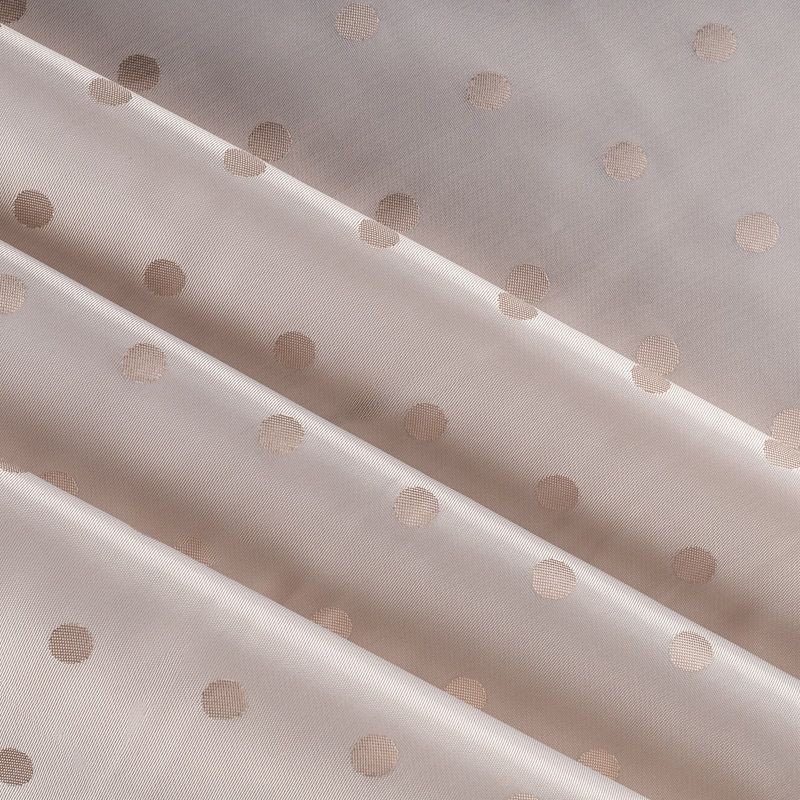 Подкладочная ткань легкая, с жаккардовым "горохом" благородного кремового оттенка, с красивым блеском. Не  просвечивает, хорошо скользит. Подойдет для изготовления таких изделий, как пальто, костюмы, куртка, шуба, платье, жакет.