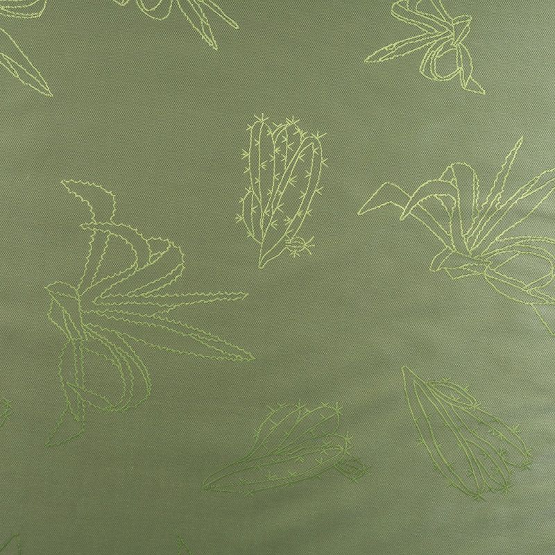 Подкладочная ткань легкая, с твиловой поверхностью и крупными  жаккардовым кактусами, с красивым блеском. Не просвечивает, хорошо скользит. Подойдет для изготовления таких изделий, как пальто, костюмы, куртка, шуба, платье, жакет.